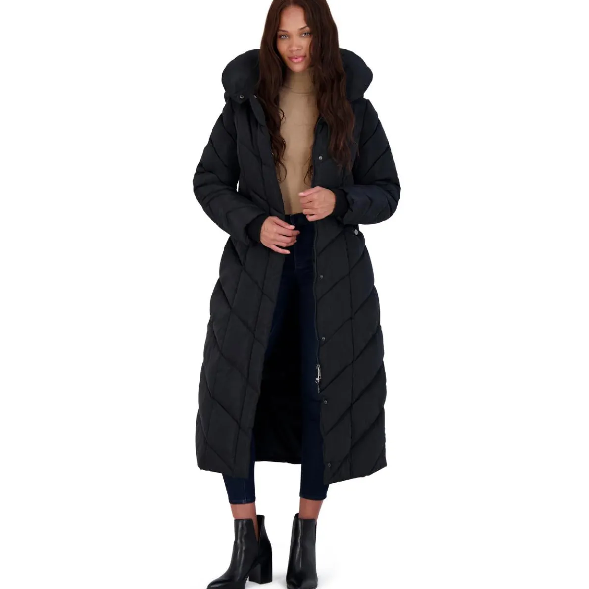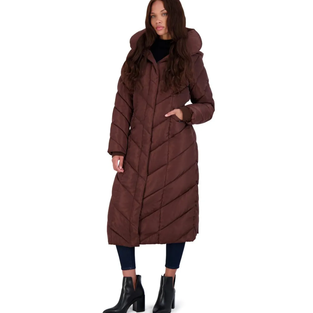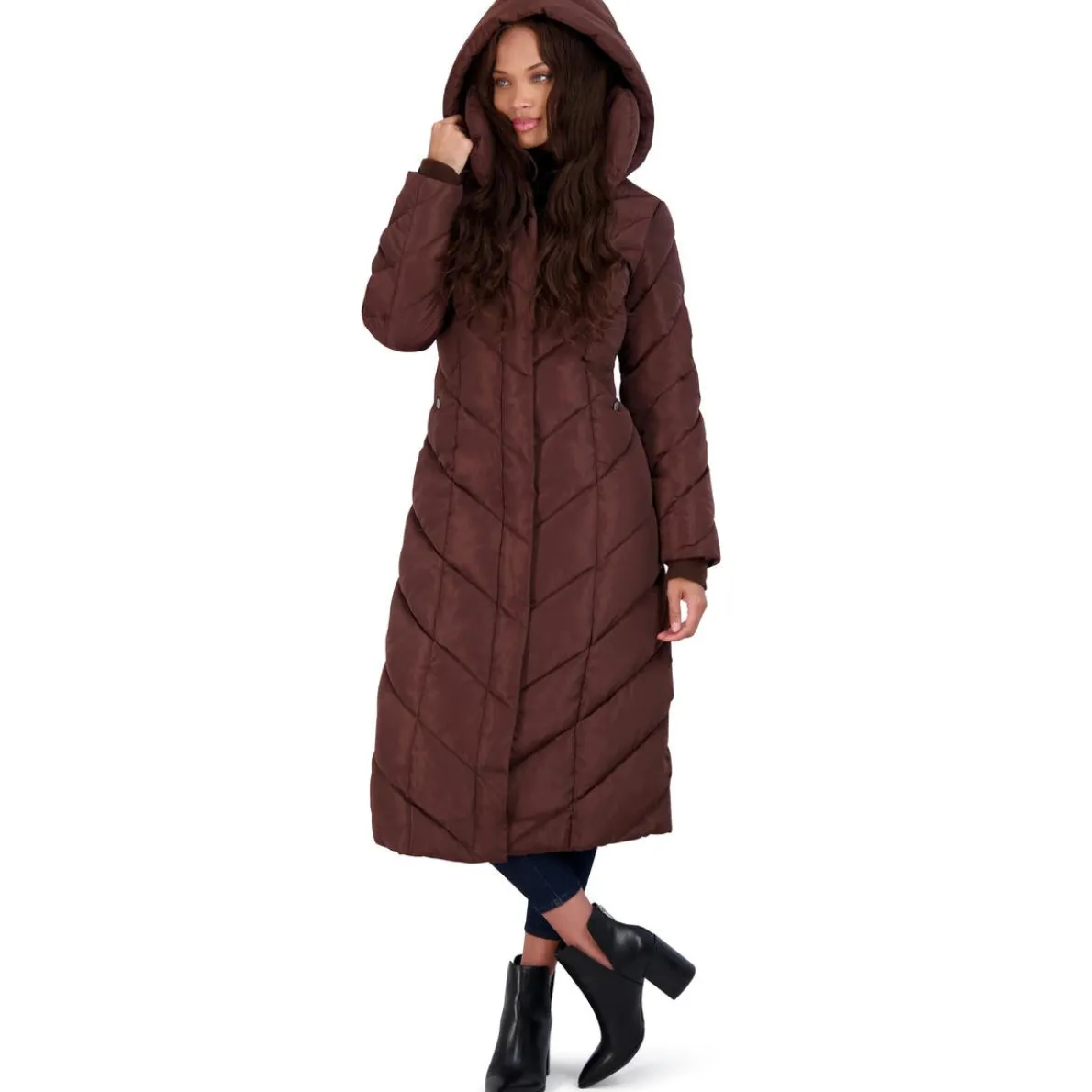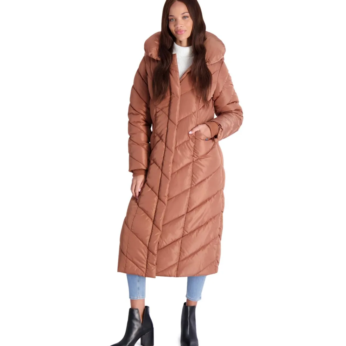 As one of the most iconic brands in the footwear industry, Steve Madden offers the trend you’re looking for at an accessible price point. For the fashionista with comfort on her mind, the Steve Madden outerwear collection delivers with their on-trend designs and extra warming features. This coat’s stylish chevron quilting and fleece lining offer cozy warmth and style all winter long. Coat contains removable hood and elegant pillow collar. This coat is guaranteed authentic.