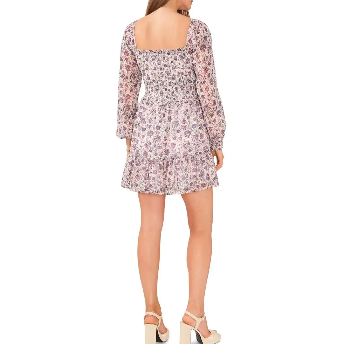 Smocked Bodice Long Sleeve Babydoll Dress